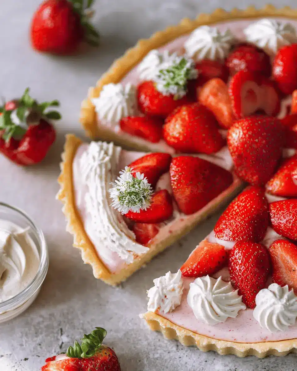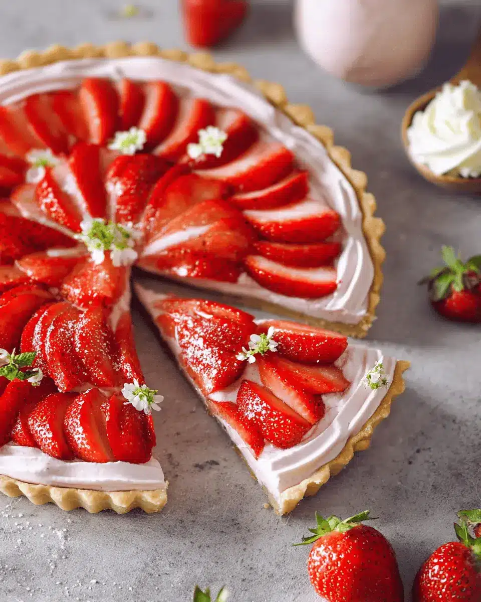 To truly make your whipped strawberry tart shine, consider creative garnishing options. Start with fresh strawberries and arrange them artfully on top. You could also add a sprinkle of mint leaves for a splash of color. For a unique twist, try dolloping meringue cookies or using edible flowers to enhance the aesthetic appeal. A light drizzle of strawberry sauce or a dusting of powdered sugar can elevate the overall look, transforming your dessert into an eye-catching centerpiece for any gathering.